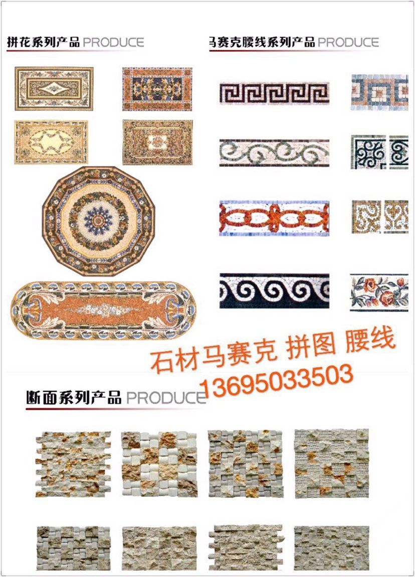 石材加工 水刀拼花 石材馬賽克 拼圖 拼花腰線(xiàn) 復(fù)合板等系列 歡迎來(lái)電詢(xún)價(jià) ??13695033503
