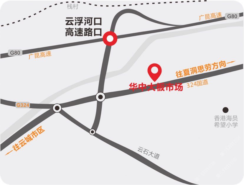 中國(guó)廣東云浮云城區(qū)河口街道夾河段華中大板市場(chǎng)