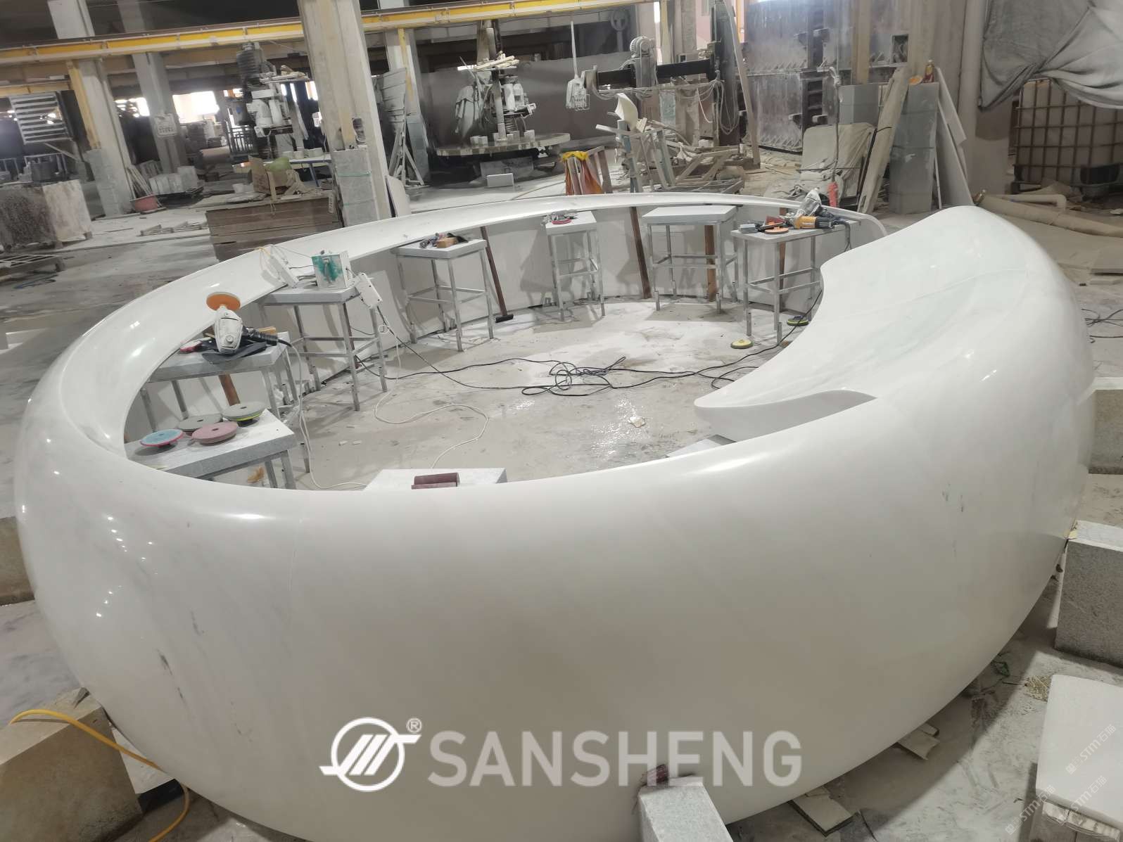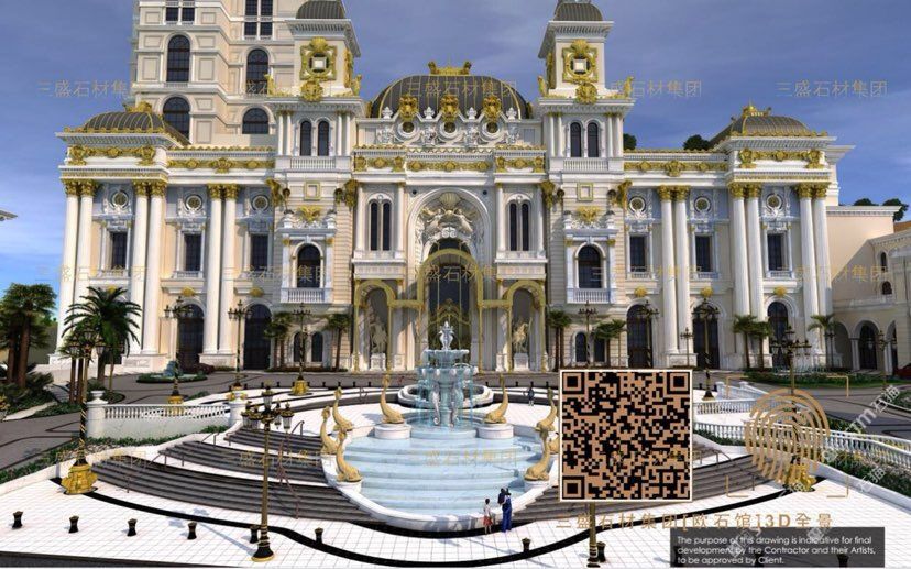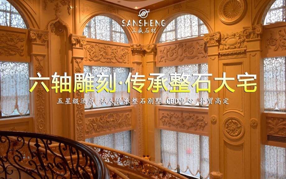 全球酒店 整石傳承大宅 外貿(mào)石材定制供應商 三盛石材5000平整石異型工藝館3D實景鏈接??