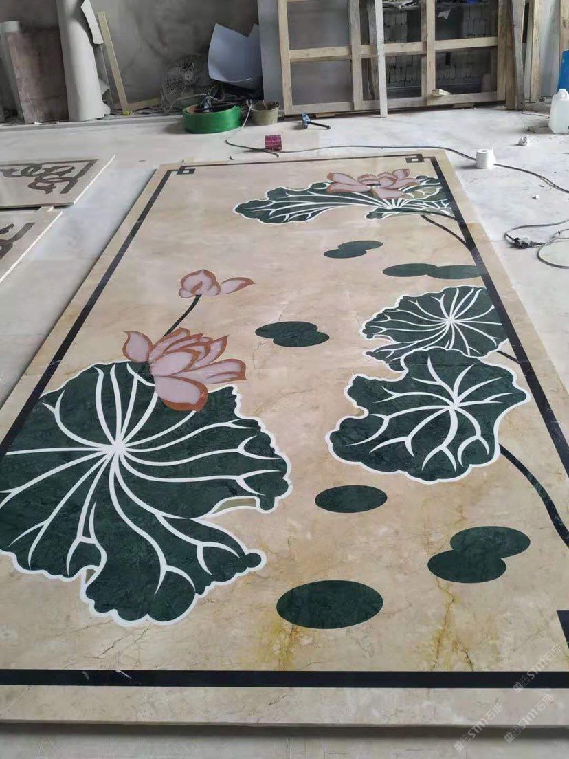 本公司 轉(zhuǎn)營大理石(歐亞木紋,藍(lán)冰玉) 水刀拼花 電視背景,特價石材。
