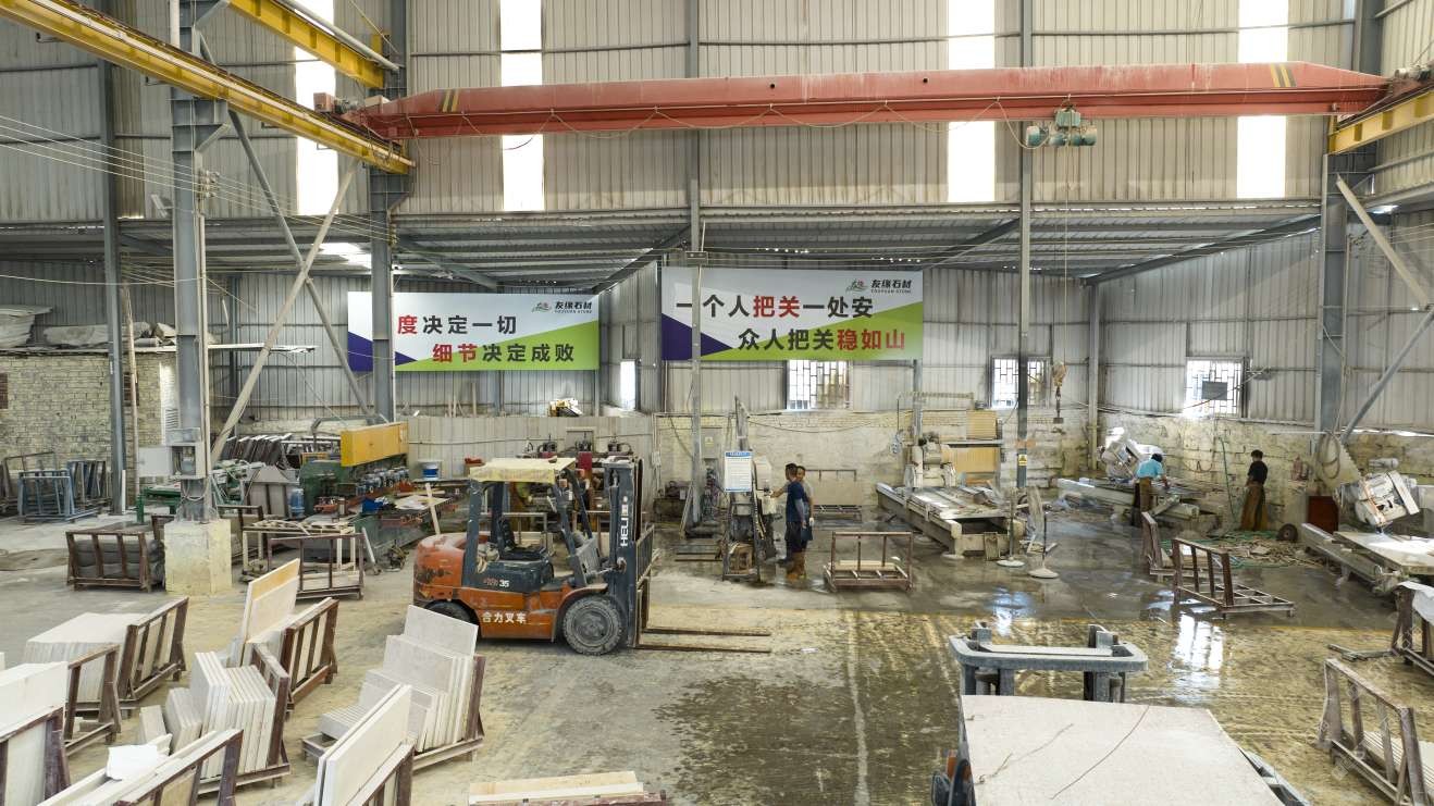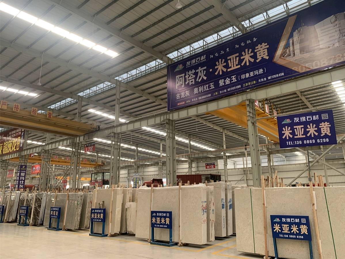 友緣石材精品加工中心、精品倉儲(chǔ)中心位于江蘇省南通市洋口港石材產(chǎn)業(yè)園區(qū),占地面積約28000平方米,生產(chǎn)中心集石材荒料加工,精品大板拋光,工程異形石材加工等一體化生產(chǎn)功能,具有國內(nèi)外先進(jìn)加工設(shè)備,如鉆石切割機(jī)、單邊鋸切割機(jī)、繩鋸切割機(jī)、全自動(dòng)板材拋光機(jī)、真空烘干流水線設(shè)備、紅外線切割機(jī)、全自動(dòng)化線條機(jī)、磨邊機(jī)、水刀切割機(jī)、仿形機(jī)等等,具備先進(jìn)的加工能力和豐富的施工經(jīng)驗(yàn)。