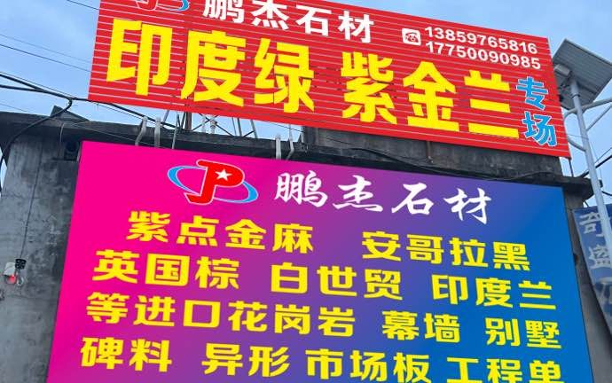 鵬杰石材有限公司?? 主營(yíng):印度綠、紫金藍(lán)、海蘭寶、安哥拉黑、印度蘭、紫點(diǎn)金麻、加州金麻 、藍(lán)鉆、銀珠、英國(guó)棕等各類進(jìn)口花崗巖成品 毛板,市場(chǎng)板,火燒面,荔枝面,承接石材對(duì)外精加工 1到50公分厚大小規(guī)格毛板成品 可訂做各種厚度異型規(guī)格板 專業(yè)園林供應(yīng)商。 廠址:水頭蟠龍工業(yè)區(qū)/建材市場(chǎng)門店 ??18606966470 李(微信同號(hào))