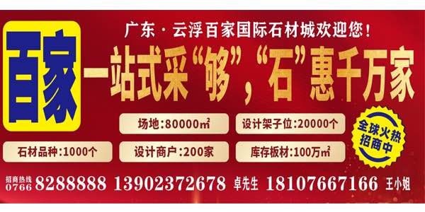 百家國(guó)際迎合云浮石材產(chǎn)業(yè)城主園區(qū)規(guī)劃建設(shè),從傳統(tǒng)“馬路經(jīng)濟(jì)”,到現(xiàn)代“園區(qū)產(chǎn)業(yè)”集群的轉(zhuǎn)型升級(jí)。