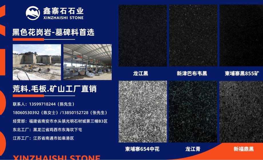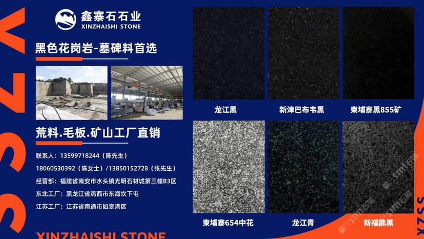 經營范圍:龍江黑、龍江青,柬埔寨黑855礦,柬埔寨654,新津巴布韋黑荒料,毛條板,規(guī)格板,承接石材外貿