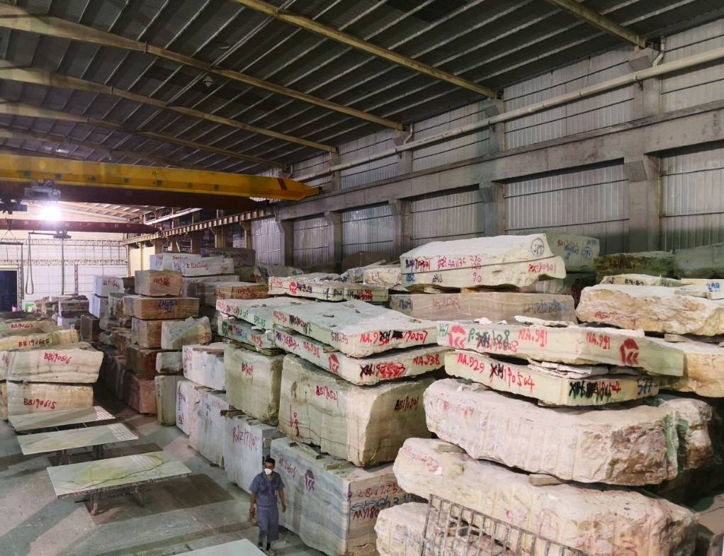 宏星玉石一廠(云?。赫嫉孛娣e19000㎡,其中大板庫房面積10000㎡,辦公生活區(qū)1500㎡,主要負責玉石大板產(chǎn)品展示、銷售、工程接待。加工生產(chǎn)車間7500㎡,主要負責玉石大板生產(chǎn)加工及荒料堆放。公司引進加工設(shè)備有:BM大鋸、云浮快鋸、全自動拋光線、烘干機、紅外線橋切機、電腦仿形線條機等大型設(shè)備。\\\
