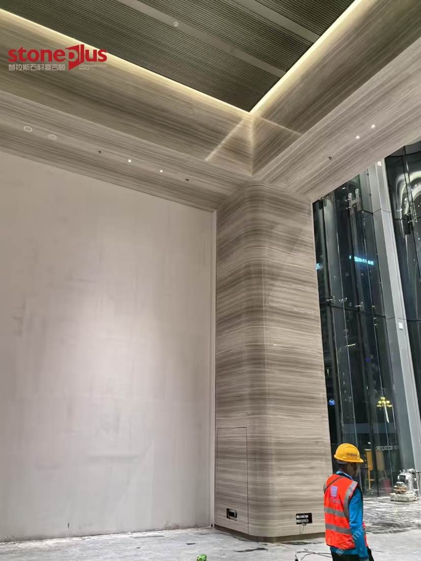發(fā)布信息: 澳門中心位于廣州市黃埔區(qū)魚珠片區(qū),項目定位為商業(yè)商務(wù)綜合體打造以港澳特色為主的、有國際影響力的科技金融和數(shù)字經(jīng)濟總部基地,并大力引入澳門文化和商業(yè)業(yè)態(tài),打造充滿澳門風(fēng)情的文創(chuàng)藝術(shù)街區(qū),實現(xiàn)科技金融產(chǎn)業(yè)一體化、粵澳葡三地合作一體化。 其中大樓室內(nèi)墻面采用白木紋復(fù)合鋁蜂窩,預(yù)埋螺栓打孔后再進行復(fù)合,到現(xiàn)場進行干掛安裝;包柱采用白木紋復(fù)合鋁蜂窩平板拼弧工藝,對手加工工藝要求較高,我們普拉斯加工對品質(zhì)的追求與現(xiàn)場的安裝效果相得益彰。