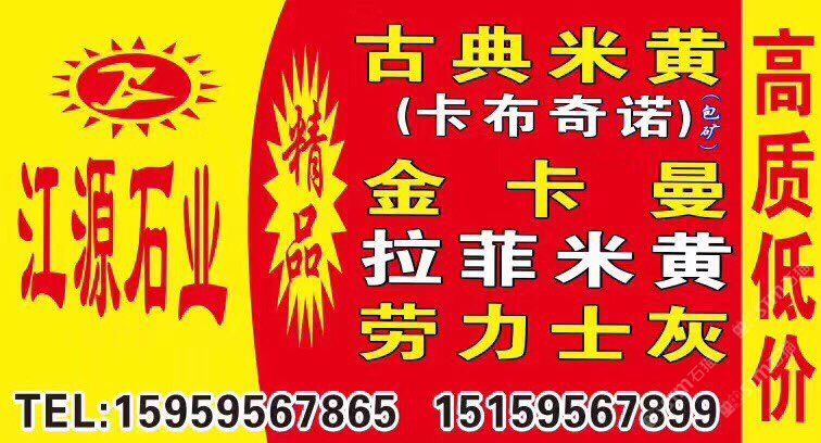 發(fā)布信息: 水頭【江源牌】主營:1??金卡曼、云曼2??古典米黃&卡布奇諾,3??拉菲米黃&新莎安娜,4??勞力士灰,5??西西里灰…幾大品種,礦山優(yōu)勢,精品多多,高質(zhì)低價(jià),部分甩賣價(jià),買到賺到??????