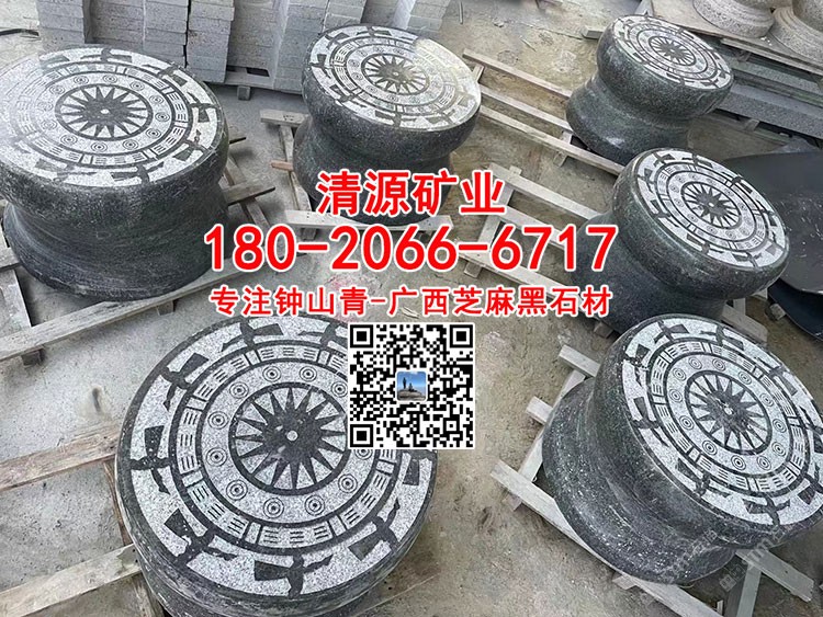 廣西芝麻黑654石雕石墩圓凳石凳鐘山青工廠加工定制
