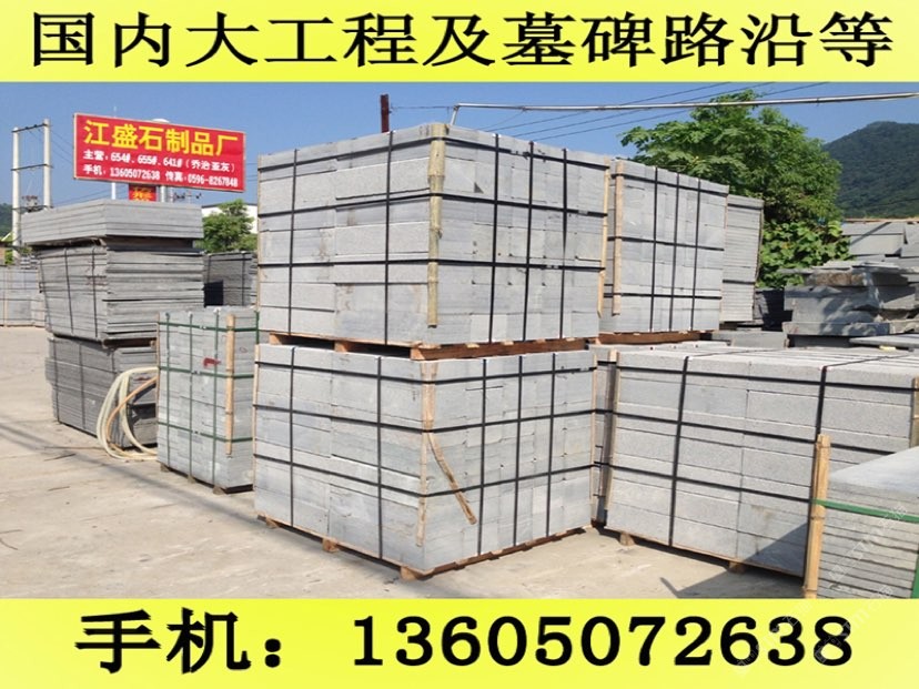 發(fā)布信息: 長(zhǎng)泰縣江盛石制品廠(王先生 手機(jī)微信:13605072638)位于福建長(zhǎng)泰的石材之鄉(xiāng)--林墩后爐工業(yè)區(qū),擁有自己大型的G654礦山,在天津與杭州有經(jīng)銷部,是一家集礦山開采、生產(chǎn)加工及經(jīng)銷部為一體的專業(yè)石制品供應(yīng)商.距廈門市60公里,離郭坑火車站僅40公里,不論是汽運(yùn),船運(yùn)或者鐵路運(yùn)輸都十分便捷. 公司主要經(jīng)營G654芝麻黑,G655#,G614#,G603#,銹石等磨光板、火燒板、荔枝面、龍眼面、蘑菇石、機(jī)刨石、路沿石、滾石、盲道石及異形加工。G654#石材被廣泛用于鋪設(shè)廣場(chǎng)、公園、街道、停車場(chǎng)等場(chǎng)所,具有防滑、抗酸堿、耐磨、耐壓等優(yōu)點(diǎn),可拼鋪成各種幾何圖案,美觀實(shí)用,符合現(xiàn)代建筑人與自然相結(jié)合的審美情趣,是工程建設(shè)、室內(nèi)外裝飾的建材,還可根據(jù)客戶需求加工石雕、影雕、碑石、墓石等工藝品。產(chǎn)品遠(yuǎn)銷香港、臺(tái)灣、日本、東南亞、歐洲等地。北京東方廣場(chǎng)建筑群、上海世紀(jì)大道、廈門國際會(huì)展中心地面工程等均采用了G654#等石材產(chǎn)品。 公司自創(chuàng)建以來,秉承重合同守信用,質(zhì)優(yōu)價(jià)廉的經(jīng)營理念,視客戶的需求為我的需求,客戶的滿意為我的滿意,贏得了客戶的一致好評(píng).真誠歡迎新老客戶來電來函洽談.王先生聯(lián)系手機(jī):13605072638