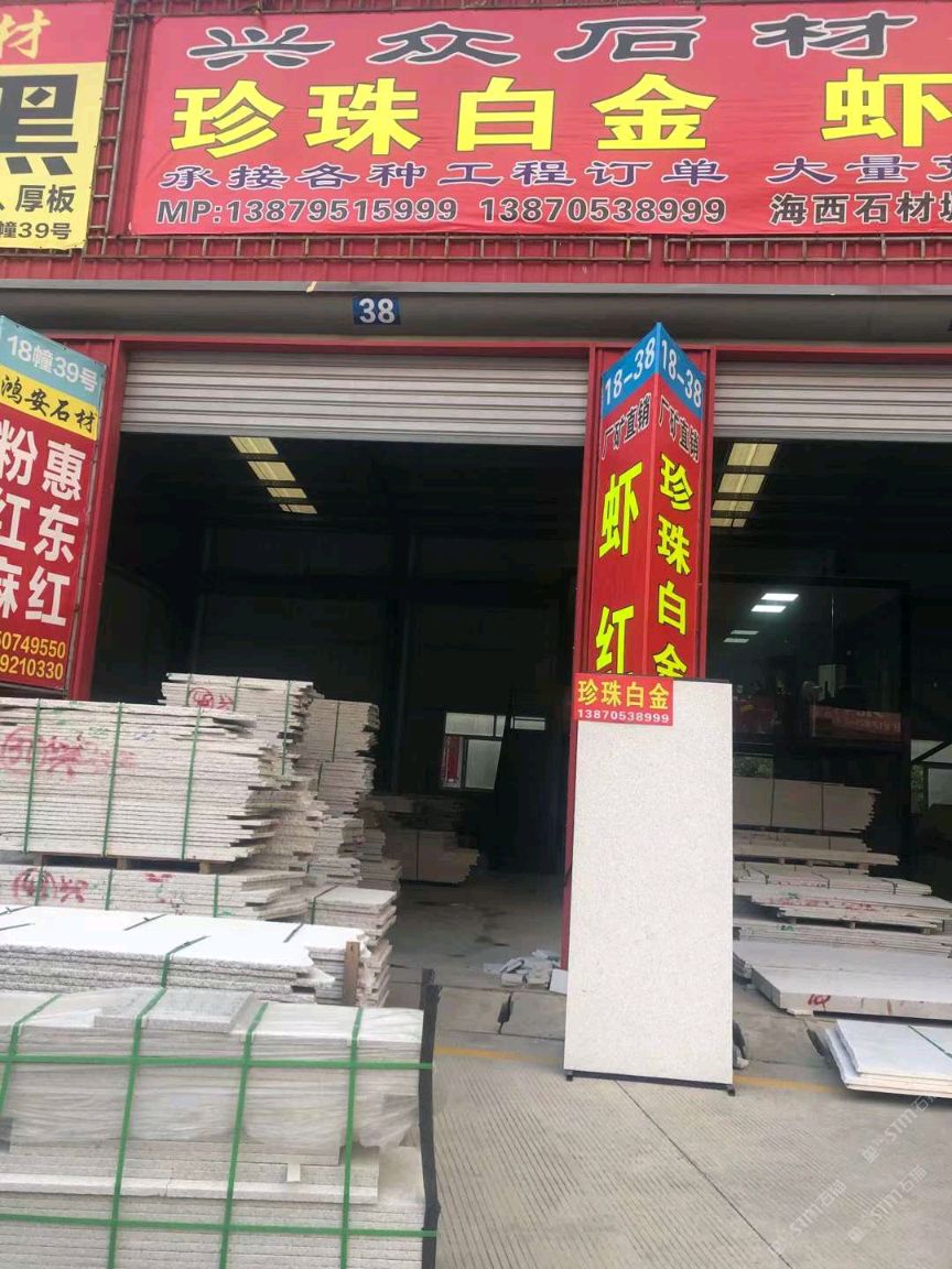 南安石井興眾石材有限公司 聯(lián)系人:李麗萍    138****8999 查看 138****8999 查看 主營(yíng)范圍: 大板批發(fā)、荒料、花崗巖加工、異型加工、 企業(yè)地址:福建泉州工廠:石井鎮(zhèn)埭頭村-興眾石材