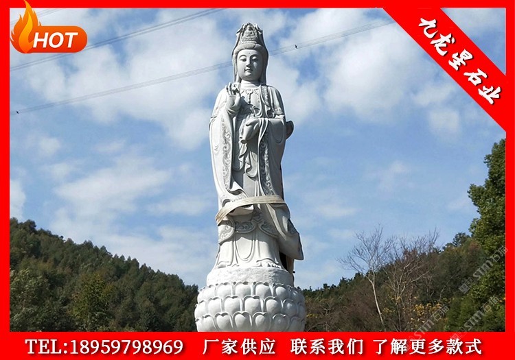 發(fā)布信息: 九龍星石業(yè)常年批發(fā)石雕觀音等佛像雕塑。(聯(lián)系電話:18959798969) 觀音菩薩在我國(guó)人們心中的形象是無(wú)染清凈、寧?kù)o圣潔、慈悲為懷、救難普度眾生。 其中,石雕凈瓶觀音菩薩雕像一手持凈瓶或做瀉水狀,另外一手持執(zhí)楊柳枝或是作法印。在我國(guó)文化中,這尊觀音菩薩可以解除生者苦難、祛病消災(zāi)。 石雕送子觀音菩薩雕像,觀音臉帶微笑,手懷抱男童,整體呈現(xiàn)慈悲形象。寓意早生貴子,添丁增壽。 石雕千手觀音也稱為石雕千手千眼觀音菩薩、千眼千臂觀音。千手的排列好似孔雀開(kāi)屏。千眼表示觀音菩薩的智慧、望眼世間;千手寓意觀音法力無(wú)邊,遍護(hù)眾生,凡有眾生苦難之時(shí),觀音大慈大悲可以護(hù)人遠(yuǎn)離苦難。