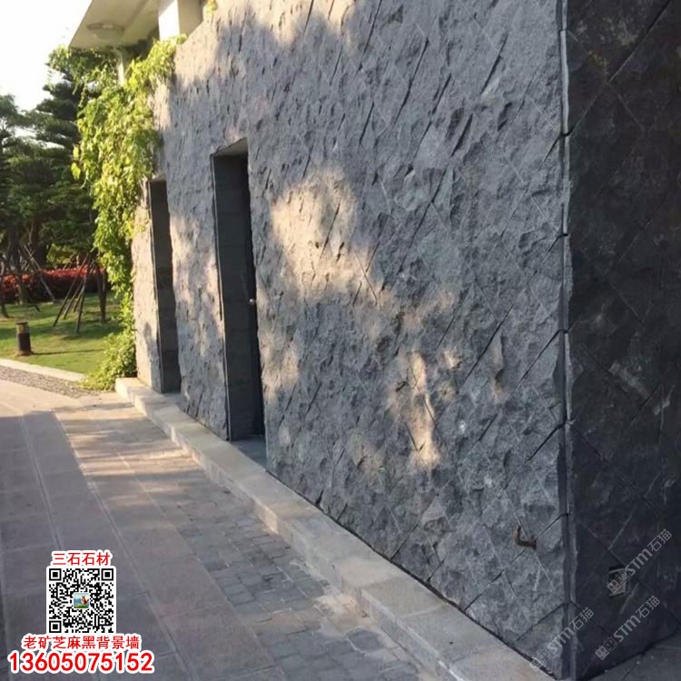 老礦芝麻黑花崗巖自然面背景墻G654石材過道背景墻