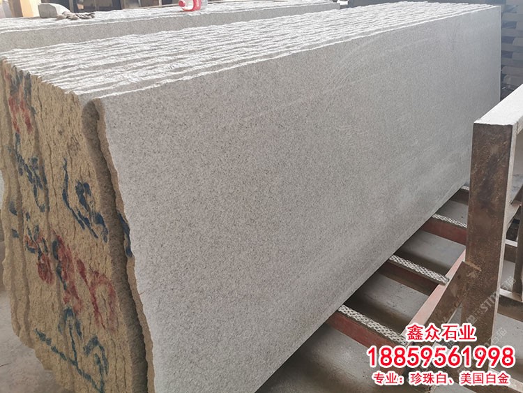 美國(guó)白金珍珠白石材-江西鑫眾石業(yè)有限公司劉總18859561998(微信同號(hào))專業(yè)珍珠白石材供應(yīng)商,是一家集礦山、荒料、深加工、成品銷售為一體的大型石材企業(yè),下屬公司主要生產(chǎn)的產(chǎn)品有:珍珠白,新珍珠白、美國(guó)白金、世紀(jì)白金、新礦珍珠白、珍珠白工廠、珍珠白廠家、珍珠白光面、珍珠白荔枝面、珍珠白火燒面、白色石材、白色花崗巖、浪花白、湖北灰麻、芝麻白、新美國(guó)白麻、等主打產(chǎn)品。企業(yè)具有承接各類大型工程,出口毛光板、規(guī)格板銷售等項(xiàng)目的業(yè)務(wù)能力。在新的發(fā)展征程上,鑫眾石業(yè)將充分發(fā)揮企業(yè)加工能力強(qiáng)、生產(chǎn)技術(shù)和加工工藝優(yōu)良的優(yōu)勢(shì),不斷調(diào)整產(chǎn)業(yè)結(jié)構(gòu)趕超國(guó)內(nèi)高標(biāo)準(zhǔn)質(zhì)量要求。公司在質(zhì)量方面嚴(yán)格把關(guān),深受廣大客戶的青睞和贊譽(yù)。鑫眾石業(yè)歡迎你來(lái)電溝通洽談業(yè)務(wù)!