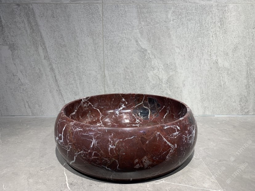 紫羅紅洗手盆 石材擺件托盤(pán)花瓶工藝品