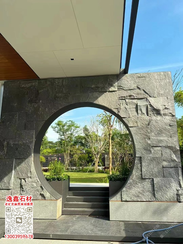 柬埔寨芝麻黑自然面背景墻劈裂石文化石新老礦芝麻黑石