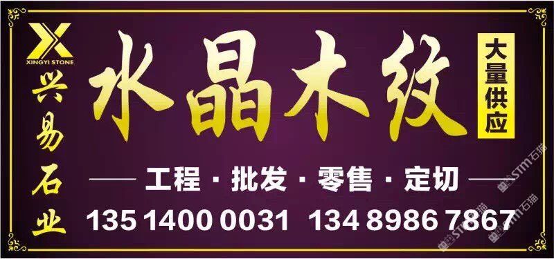 發(fā)布信息: 【興易石業(yè)】—水晶木紋專場 年末鉅惠,互惠互利 全場大板特價(jià)出售 58元起!! 我司專營水晶木紋系列產(chǎn)品:水晶木紋,啡金沙、翡翠木紋。新.白金沙.藍(lán)金沙 工程訂單-零售家裝-單件-單片均可銷售 電話:13514000031 13489867867 銷售點(diǎn): 高時(shí)物流靠近一號館大門右手路