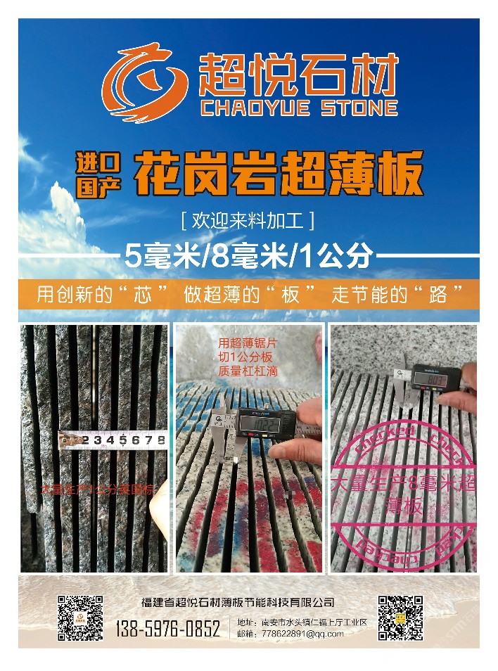 發(fā)布信息: 握手]我工廠采用超薄3.0鋸片大切專業(yè)對(duì)外來料精加工進(jìn)口國產(chǎn)花崗巖。高出材率!為你降低成本,提升利潤空間! 財(cái)富密碼13859760852