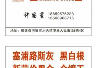 豪旭建材有限公司主營產(chǎn)品:塞浦路斯灰1,魚肚灰,翡翠白玉,比薩灰1,比薩灰2,比薩灰(國產(chǎn)),特普灰(正礦),特普灰,云多拉灰,云多拉灰13,云多拉灰2企業(yè)地址:福建泉州南安市水頭鎮(zhèn)澳盛市場8棟4區(qū)