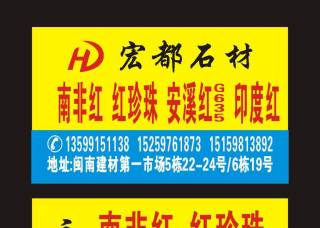 南安市宏都石材主營產(chǎn)品:南非紅,紅珍珠,印度紅(老礦大花),G635安溪紅,喬治亞灰3,芝麻灰(山東),新永定紅(光面),藍眼睛(伊朗),幻彩紫,幻彩紅4企業(yè)地址:福建泉州南安市G324(福昆線)中國·水頭中國石材城