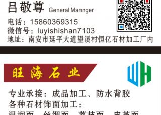 旺海石材加工廠主營產(chǎn)品:芝麻黑火燒面(浙江礦),蝦紅(火燒面),青石(火燒面),白麻(火燒面),灰麻(火燒面),越南黑火燒面,咖啡鉆火燒面,墨綠鉆火燒面,山西黑(火燒面),黑金剛火燒面(巴基斯坦),芝麻白(火燒面),黃銹石(火燒面),黃金麻(火燒面),福鼎黑(火燒面),G633火燒面,漳浦銹(火燒面),四川黑(火燒面),G655火燒面(漳州礦),石井銹(火燒面),壽寧紅(火燒面),印度黑(火燒面),藍寶石(火燒面),梨花白(火燒面),象牙白(火燒面),楓葉紅(火燒面),新蝦紅(火燒面),印度黑(火燒面)大花,金灰麻(火燒面),角美銹(火燒面),粉紅麻(火燒面),寶石棕(火燒面),蝦紅荔枝面,霞紅荔枝面(PC磚),蝦紅荔枝面(PC磚),銹石荔枝面(PC磚),青石(荔枝面),白麻(荔枝面),銹石(荔枝面),青石(荔枝面)1,芝麻灰荔枝面(PC磚),卡麥(荔枝面),白沙(荔枝面),蝦紅(荔枝面),芝麻白荔枝面(PC磚),灰麻(荔枝面),咖啡鉆荔枝面,紅板(荔枝面),芝麻黑荔枝面(浙江礦),芝麻黑荔枝面(PC磚),黃金麻荔枝面(PC磚),洗衣池(花崗巖),臺面板(大理石),臺面板(花崗巖),臺面板(石英石),洗手盆(大理石),洗手盆(玉石),石線(大理石線條),石線(花崗巖線條),水刀拼花(大理石),水刀拼花(花崗巖),背景墻(大理石),洗手臺(花崗巖)企業(yè)地址:福建南安延平大道望溪村恒億石材加工廠內